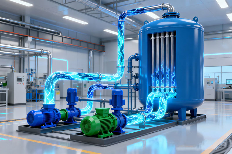 ESS蓄熱槽は、スチールまたはコンクリート製で、水が満たされ、ポリエチレン製の熱交換コイルが設置されています。